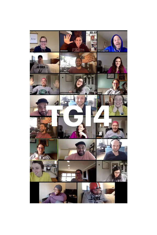 With the help of Zoom we’ve been able to maintain morning team meetings, a virtual lunch table and most importantly our beloved TGI4 on Friday afternoons. Our team zoom calls have been a source of impromptu hat-off’s, team brainstorms, 15-minute stretching sessions, zoom background pranks, dog show-and-tell, and happy hours.
