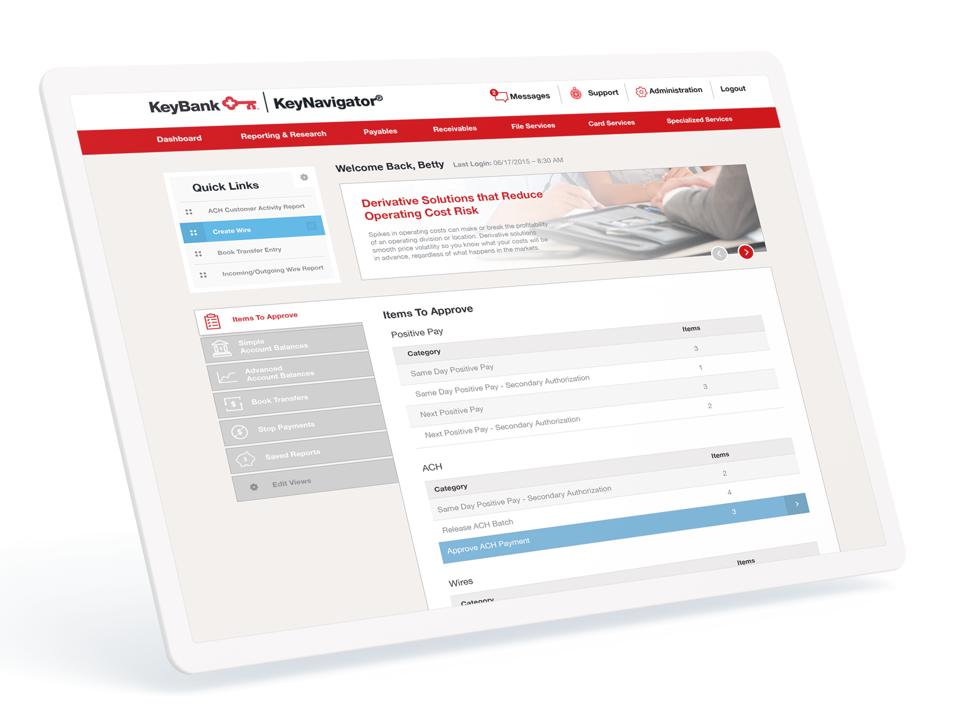 The world of commercial banking contains volumes of intricate transactions and information. After spending over a year with internal stakeholders and users of KeyBank products, the team at Recess took the lead in redesigning KeyBank’s online user experience. Through researching customer and company need, we identified an opportunity to create a platform that adapts to different devices, tasks, and consumers, allowing for seamless transactions from start to finish. The result, KeyNavigator, provides personalized solutions for users in every role—from the CFO of the largest company to the CEO of the smallest.