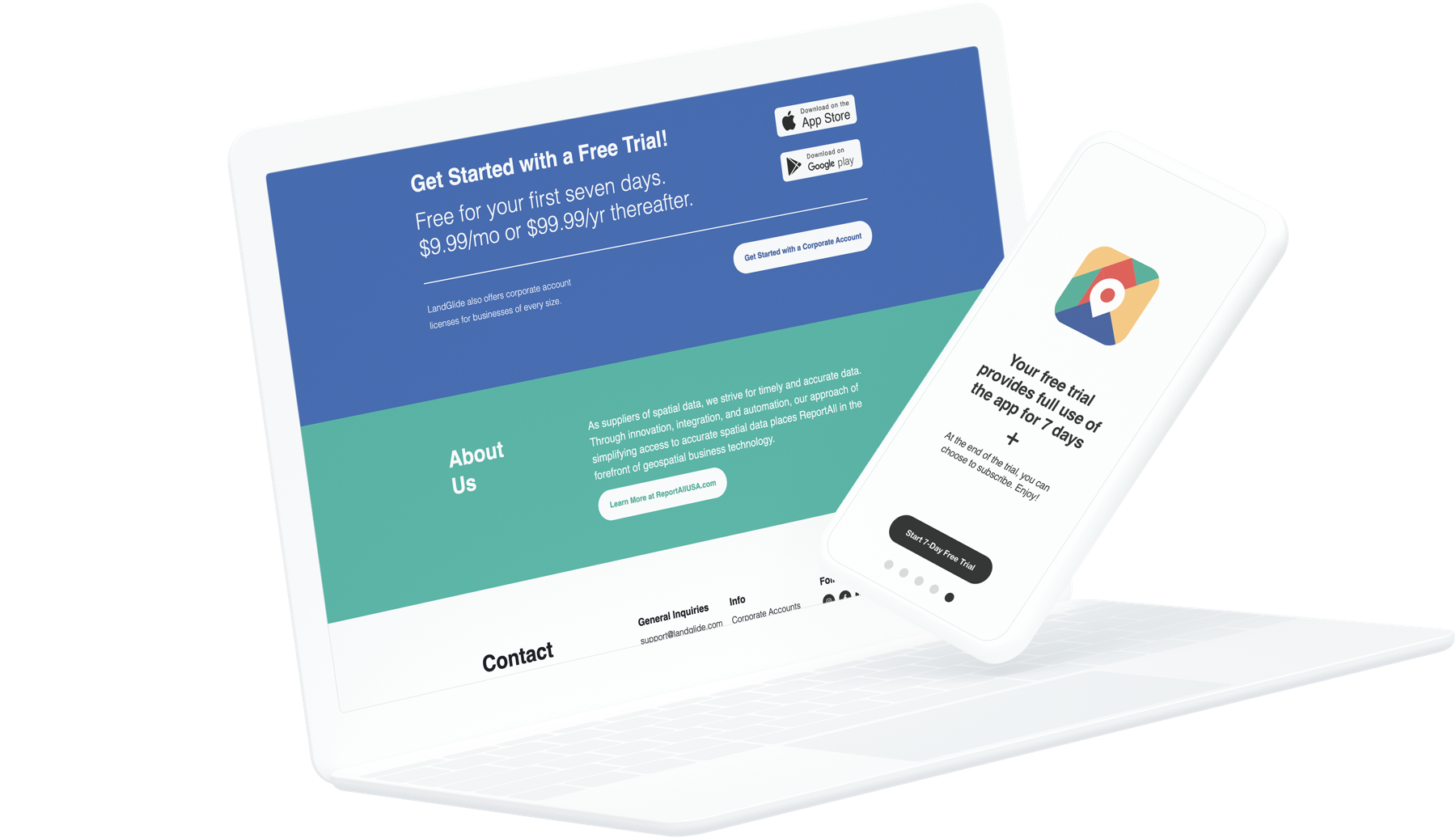 In tandem with the new brand and UI refresh, we created a new marketing campaign focused on getting the brand in front of new users. The campaign was focused on app downloads as well as general brand awareness that included a LandGlide microsite.